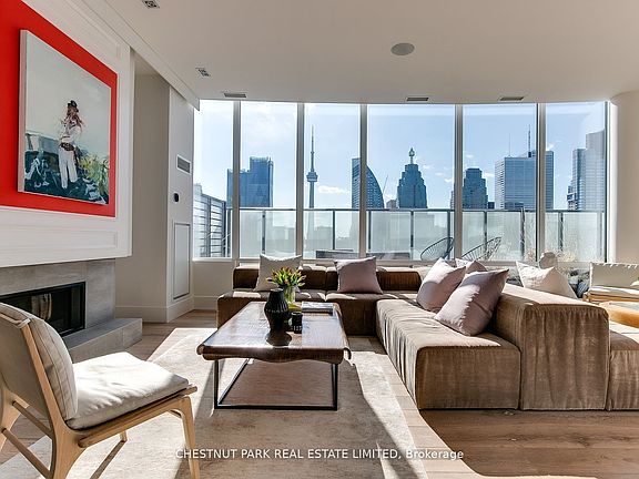 Spectacular, one-of-a-kind two-level penthouse suite in the St. Lawrence Market with large terrace and incredible views on both levels. Almost 1800 square feet Bought from builder's plans and custom designed by current owners with exquisite finishes and details. Open-concept main floor with spectacular north, south, and west 180-degree views of the terrace and city skyline. Dramatic fireplace wall. Two spacious bedrooms on the second floor, including a large primary suite with seating area.Breathtaking city skyline views from both bedrooms. Fully landscaped and irrigated 1044-square-foot terrace with outdoor kitchen, dining, and seating areas with gas fire pit and water feature. Two walk-outs to terrace.
