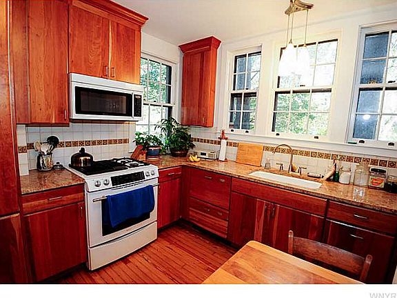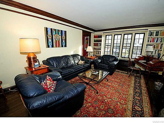 Charming E.B. Greene designed townhouse located on a private walkable lane and an end unit! One of Buffalo's best kept secrets. Four floors of living space with beautiful views of the gardens. Loaded with original charm and updated kitchen and baths. The lower level is fully developed and would be a great guest space with full bath. Top floor fully finished with full bath, updated gourmet kitchen and baths, attached garage and 1 covered spot.