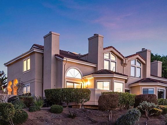 Work from home (and workout from home) in your gorgeous two-story Mediterranean-style Townhome with stunning views of downtown San Francisco and the Bay from almost every room! Downstairs is a living room/dining room combo with wet bar, soaring ceilings and marble fireplace. Off the living room is a sun-filled deck. Adjoining the living room is a separate family room or officeimagine working from home with that view! Beautiful upgraded kitchen with granite countertops, top-of-the-line stainless steel appliances and a small breakfast area. Lovely remodeled guest bath. Curved stairway up to the second floor, complete with luxurious new carpeting. Master bedroom suite with high ceilings, marble fireplace and amazing views. Spa-like bathroom with double vanity, whirlpool tub, stall shower and large walk-in closet. Second bedroom with sunny deck, large private bathroom and adjoining bonus room Laundry room with washer and dryer, a sink and plenty of storage. Attached two-car garage.