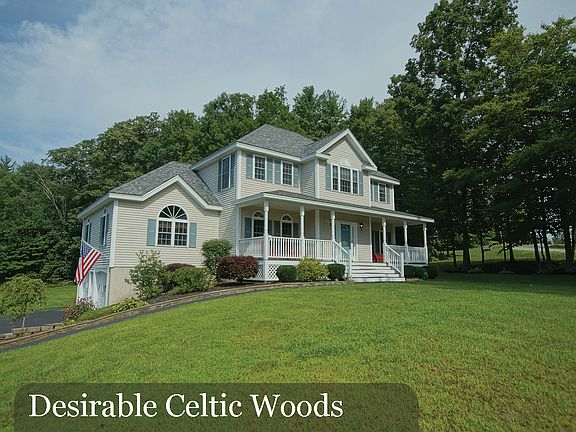 Celtic Woods PRISTINE Colonial with an EXTRA 2 FEET of floor depth for ADDED Entertaining space in the Kitchen area, Larger Bath and Formal Livingroom, Not Many with this Added Space in this development. PLUS, the Fabulous FARMER'S PORCH where you can SIT BACK and RELAX on Lazy Summer Afternoons. This STUNNING 4 Bedroom Colonial offers 2786 Sq Ft ABOVE GRADE. As You Enter, you are Welcomed by the HUGE Foyer. HARDWOOD Floors FLOW throughout the Main Floor. The Oversized Eat-In Kitchen overs a Breakfast Bar, some Stainless-Steel Appliances, Pantry and More. Desirable First Floor TILED Half Bath with Laundry, Washer and Dryer STAY. Formal Diningroom offers TREY Ceilings. Familyroom with GAS FIREPLACE. The HARDWOOD Floors FLOW to the Second Floor Hall where the Master Suite is found with a TWO Sink Vanity, LARGE Jetted Tub as well as a SHOWER. Head outside and you will LOVE the LEVEL Corner lot with Large Back Yard, Shed, 6 Zone Irrigation System and a Deck for Grilling. Come check out this Property Today. View VIRTUAL TOUR for Floor Plans, 360 Video & Panoramic Photos. Subject to the seller finding suitable housing.
