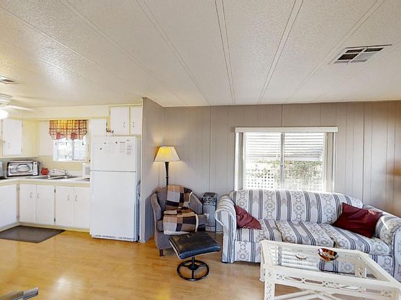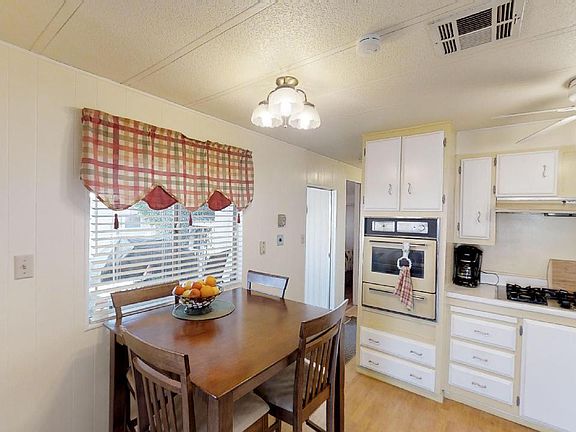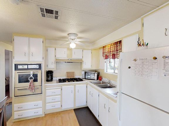 This lovely and bright 2 Bedroom 1 Bath Mobile home is located in the Tramview Mobile Home Senior Community (55 years of age and above). The second bedroom makes it easy to have visitors since it has a bed instead of just a sleeper sofa. The home is quite spacious and offers a large open kitchen/dining/living room area. The outdoor covered terrace overlooks the extra wide concrete parking pad. Through an arbor-like arched access way, there is the semi-private patio with access to the laundry shed, and two other storage sheds. There are two fruit trees on the property as well. The Golf Cart is included too! Tramview offers a heated swimming pool and spa, a club house with tables for card playing, two pool tables and smaller kitchen, while the large banquet hall features a larger kitchen and stage for larger parties. There are 9 shuffle board lanes as well. Tramview is close to Trader Joe's, Target, Bart's Bar, The Barrack's Bar and AJ's on the Green!
