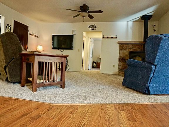 WELCOME HOME! Cozy, Private, Charming--- and MANY UPGRADES! Situated on 2.5 acres of forest yet easy access off of Highway 70 - this home has been meticulously upgraded and maintained: NEW kitchen with many new appliances, Corian countertops, new lighting, OPEN AND SPACIOUS.... ALL new laminate (wood-look) floors in kitchen and dining rooms; NEW CARPET and TILE in Living RoomWoodstove AND Toyo stove for comfortable year round heat. Two separate bedrooms and baths at each end of the home - charming covered deck to enjoy the forest views and wildlife! Garage is immaculate, with attached carport/Shed/Work space; Separate detached Carport; Separate Wood storage space and well and pump house. Not only is the driveway paved.... the entire space around the home is concrete, clean, neat and easy to maintain. NEW tankless Water Heater! NEW well installed in Nov. 2017!