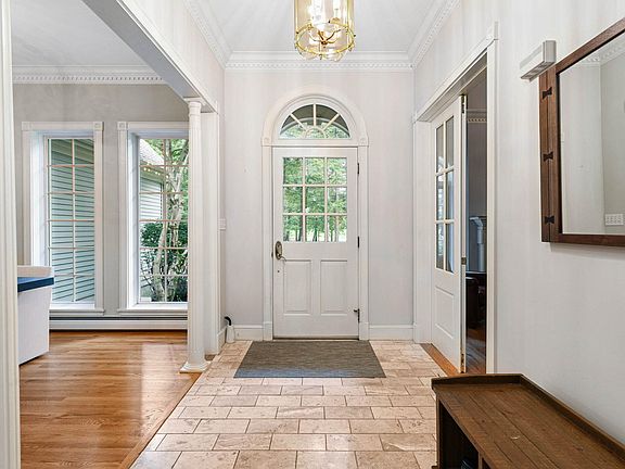 A rare opportunity in the exceptional Falmouth on the Green community awaits! This spectacular home is ready for you to enjoy the luxury lifestyle nestled in this prestigious neighborhood adjacent to the Falmouth Country Club. Whether the ultimate entertainer or looking for a luxurious escape, this home will exceed your expectations. A serene setting, with expansive deck offers a private backyard oasis to relax, entertain & enjoy. Inside are remarkable features, finishes & attention to detail at every column, crown molding & home system, right down to the sparkling three-bay garage floor. The open living area boasts red oak flooring overlooking the deck with an abundance of windows providing a wealth of natural light, ideal to soak in the sun & watch the seasons change. Comfort in any season is certain with 6 heat pumps & whole house generator. Thoughtful elements include a 1st floor private office & well-appointed laundry room. Seamlessly flow from the living area to the gourmet kitchen: entertain with ease or enjoy hot cocoa snuggled around the wood-burning fireplace. An exquisite formal dining room offers floor to ceiling windows adding flair to your dinner parties before the Amuse-Bouche is even served! The luxury continues in a spacious 1st floor primary bedroom and en-suite with double sinks, bidet, creative custom walk-in closet, & direct access to the deck, perfect for a first sip of morning coffee or last nightcap of the evening. A stunning central staircase leads to a unique loft area and 2 bedrooms, which share a full bath and private water closet. Amenities continue with a custom sauna in the finished basement area and rooms for you to decide: elegant home office, personal gym or ultimate game room? Set on almost 2 acres, this well-landscaped property is neighbor to a world class golf course and a wealth of Falmouth amenities, mere minutes to trendy Downtown Portland & The Jetport, offering not only an exquisite home, an exceptional lifestyle as well.
