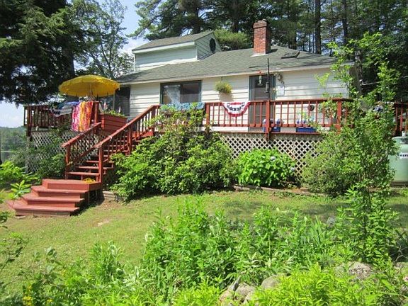 Meredith, NH - Delightful home has 232+- feet of Lake Wicwas shorefront. 2.91+- acres and your own boat house! This wonderful property sits privately back from the road on a large lot with a large grassy yard to enjoy four seasons by this tranquil lake. Cozy brick fireplace in the living room, screened-in porch, full length lakeside deck, garage, sandy beach and plenty of privacy. Peaceful Lake Wicwas encompasses 328 acres, much of which is bordered by conservation land. The location is ideal, minutes to I-93, Laconia and Meredith Bay on Lake Winnipesaukee.
