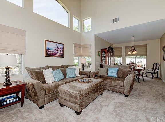 Gorgeous views surround this wonderful 5 bedroom home settled in the golf course community of Dove Canyon! Soaring ceilings and natural sunlight are offered in the exclusive formal living and dining rooms. The gourmet kitchen boasts granite counter tops with stainless steel appliances and center island that open to the spacious separate family room with a brick fireplace and views of the mountains. The main floor bedroom has a dedicated full bath that is ideal for guests. Freshly painted banister, newer carpet, newer porcelain tile, custom light fixtures, newer HVAC unit and custom window treatments are just some of the extra upgrades this home has to offer! The master suite has a large bath with dual vanities, walk in closet, shower and separate tub. The private backyard features an in ground spa, built-in barbecue and grass and patio areas all surrounded by the beautiful setting of mountains and hills. An over-sized 3 car garage is attached. Enjoy the Dove Canyon amenities that include Jr Olympic size swimming pool, spa, 4 lighted tennis courts, and park with full basketball court, grass area for playing, picnic tables, barbecues and playgrounds. Take advantage of the miles of hiking and horse trails! Optional social memberships may be available.