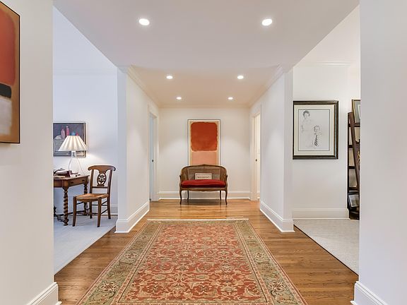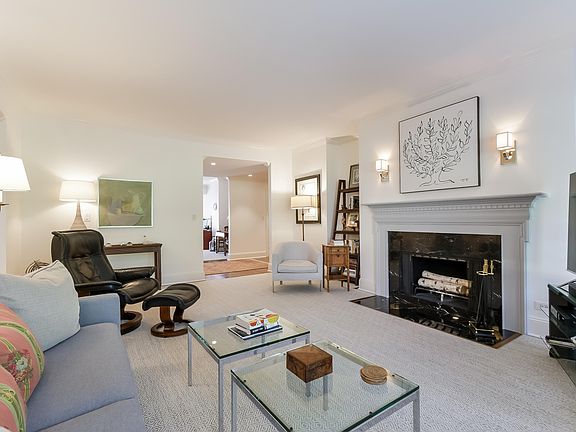 Elegant one floor living overlooking gardens in premier building close to town and shops. Front to back extra wide center hall with Living Room, Dining Room and Den on both sides. Great flow. All new bathrooms, appliances and hardwood floors. Assigned indoor parking spaces and storage room. Meticulously maintained building with resident Superintendent.