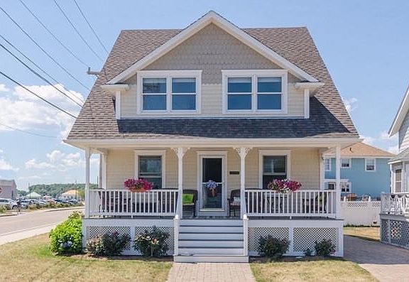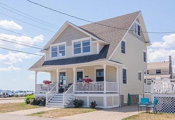 New to Market. Enjoy all the gorgeous bay views and boat activity from almost every room of this beautifully remodeled 4 Bedroom 2 Bath Colonial. It welcomes you with a lovely sitting porch, large living room, dining room, corian kitchen with sliders out to back deck, convenience of first floor laundry room, master bedroom with large loft, vaulted ceiling second floor bath, second bedroom with additional loft area for living or storage space, hardwood floors throughout, out door shower, maintenance free exterior includes cedar impression shingles, all just steps to beach and commuter boat to airport and Boston. Whether living here year round or simply as a summer retreat, one would be glad to call this home.