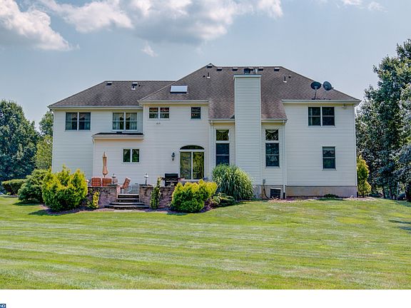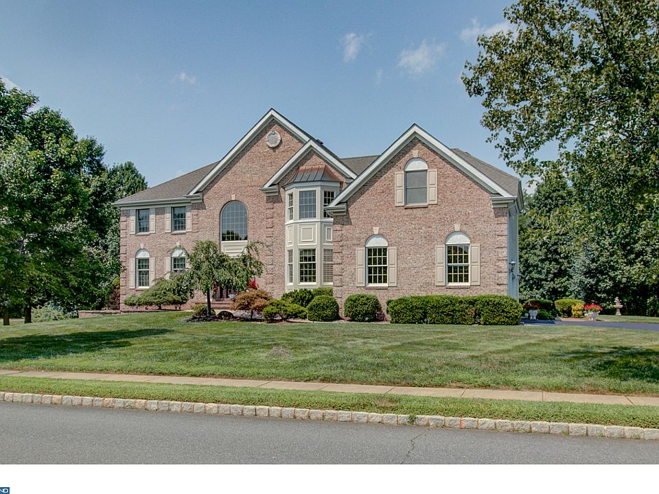 Spacious Coventry III model in the forest Edge development is located on 2.29 acre professional landscaped corner lot with underground sprinkler system and is within walking distance to the schools. Upon entering into a 2 story large foyer you will find beautiful hardwood floors in the Foyer, Dining room and family room. Crown moldings in the Living room and crown and chair moldings in the Dining room. A large bay window in the dining room allows for an abundance of sunlight. The large kitchen has 2 pantries a large breakfast bar and plenty of natural tone wood cabinets, granite counter tops, stainless steel appliances and ceramic tile floors. The breakfast area has Sliding doors that lead out to a raised paver patio designed for entertaining and relaxation. The 2 story large family room has a wood burning fireplace great for spending quality quite time with the family. There is one bedroom on the first floor with a partial bath but large enough to add a shower. The 2nd floor has 4 bedrooms and 3 full baths. The master bedroom has a master bath with a Jacuzzi tub, a stand up shower and double vanity sinks. There also an extra room off the MB can be used as a sitting room or office and 2 large walk in closets. There's also princes suite with a full bath and 2 other bedrooms that shared a bathroom. 2 zone heat and A/C. 3 car Garage, a full basement and a 30 year timberline dimensional roof. this property is centrally located and is within minutes to NJTP and 295.