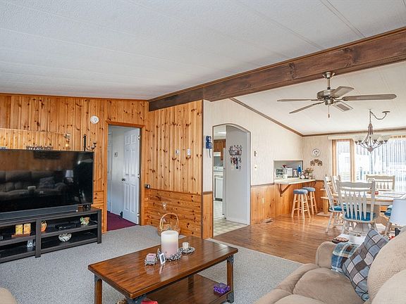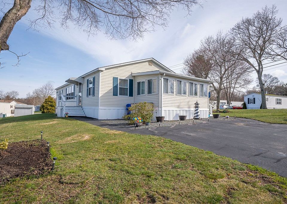 Very well maintained, 3-bedroom, 2 full bathroom double-wide mobile home available in Colonial Estates 55+ park. The main entrance includes an entry closet and opens up into the large living room and dining area which boasts vaulted ceilings. The sunny kitchen with ample storage includes a breakfast counter and new stove as of 2017. The laundry room is tucked away past the kitchen. The primary bedroom includes a full en-suite bathroom. The additional front sunroom can be used as den, office or whatever works for you. There’s so much storage throughout including pull-down attic access. You’ll find even more storage in the shed. Many updates include heating system and central a/c in 2022. $625 monthly fee includes taxes, water, trash removal, lawn mowing, common plowing and landscaping, clubhouse and pavilion. At least one resident must be 55+.