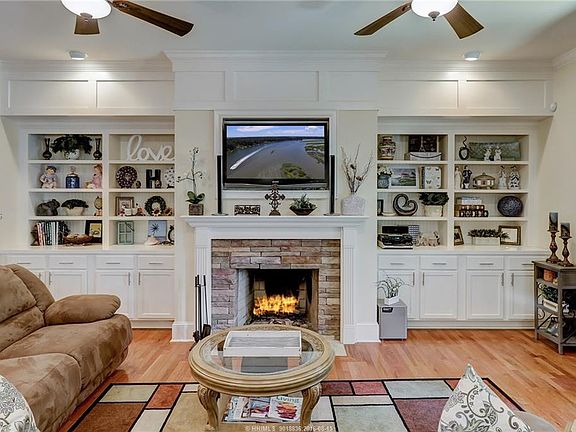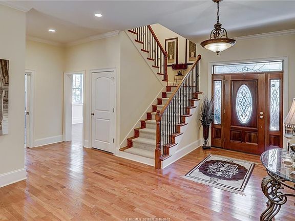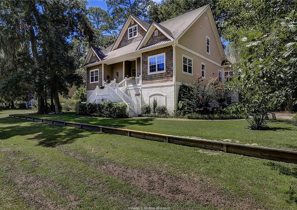Beautiful lowcountry home within steps to the May River! 4BR/4.5BA custom built home w/an oversized 2-car garage and tons of storage space. Open Floor plan. Granite Kitchen w/SS appliances, center island and a Brkfst Area. Hardwood Flooring in the main living areas. Great Rm w/ fireplace and built in cabinets. Formal DR w/ tray ceiling. Sun Rm w/ an abundance of natural light. Large Master Suite w/two walk-in closets, double vanities and tile shower. 3 Guest Bedrooms w/full baths and walk-in closets upstairs. Community dock access and low HOA fees. Move in Ready. Don't forget your golf cart!