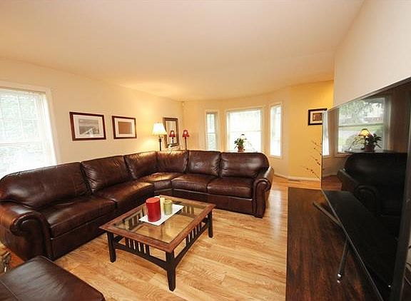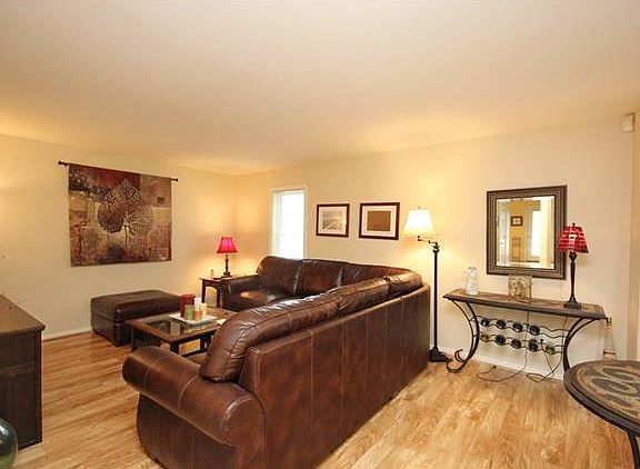 This simply adorable condominium is in a convenient location. The 3-bedroom townhouse has 2 full baths and 2 half baths. The finished 3rd bedroom on the 1st floor can also be used as a recreation room, den or entertainment center. The main level houses a large dining room with plenty of space for family and friends and exits to a lengthy deck perfect for grilling. The family room has a bay window with the bonus window of an end unit! The upper level has a large master with a master bath and equally large second bedroom. This unit has brand new floors on the main level, 1st floor and stairs, comes with central air, a 1 car garage and is being sold by the original owner.