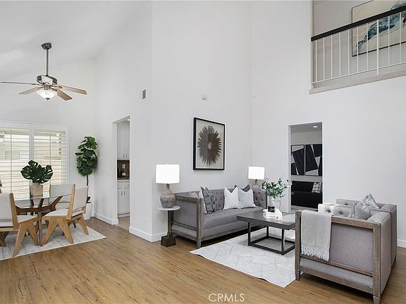 Welcome to this stunningly upgraded 3-bedroom, 2.5-bathroom corner unit home located in the highly desirable Woodbridge community of Irvine. The soaring two-story ceilings, an abundance of windows, and the seamless open floor plan create an inviting and warm ambiance. Throughout the lower level, you'll find exquisite laminate and tile flooring, while a captivating wood-burning fireplace serves as the centerpiece of the living and dining rooms. The kitchen boasts white cabinets and Granite counters, stainless steel appliances, and a bright garden window that fills the space with natural light. Counter seating opens the kitchen to an inviting family room with a glass slider leading to a private outdoor patio with the perfect balance of greenery and entertainment space. The second level offers a primary bedroom with tall ceilings, corner windows, and an ensuite featuring a double vanity and bath/shower. Two additional bedrooms share another well-appointed full bath providing ample space for family or guests. Enjoy the accessibility of an attached two-car garage and a park so close you'll want to call it your own. The attached two-car garage has tons of storage cabinets, and an additional two-car driveway makes parking a breeze! Don't miss this beautifully upgraded opportunity!