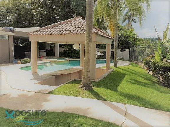LIVE SURROUNDED BY NATURE IN THIS EXCLUSIVE AREA IN A SPACIOUS RESIDENCE AND BEAUTIFUL LOT OF 1,230 MC AND 2900 PC APPROX. ONE LEVEL, CORNER WITH 4 COMFORTABLE BEDROOMS, 3 FULL BATHROOMS AND TWO HALF BATHROOMS, MARBLE FLOORS AND BATHROOMS, LIVING ROOM WITH HIGH CEILINGS AND GLASS DOORS THAT YOU CAN OPEN AND CONNECT WITH TERRACE, SEPARATE MAID ROOM AND LARGE OFFICE, LAUNDRY ROOM, TERRACE WITH BAR AREA, 20K DIESEL GENERATOR WITH AUTOMATIC TRANSFER SWITCH. SOLAR WATER HEATER, 3 GARAGES PLUS SIDE SPACE TO ACCOMMODATE VEHICLES, BOAT, ETC. POOL WITH JACUZZI AND WET BAR, GAZEBO, SECURITY. HOA ONLY $ 180 MONTHLY. PROOF OF FUNDS REQUIRED TO SHOW. LOCATION: 18.354140, -66.091714..
