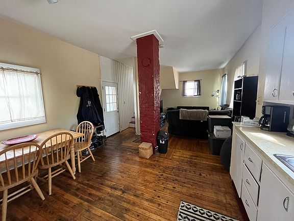 Quiet townhouse unit available now. Townhouse has its own entrance. First floor contains open concept living room/ dining room/ kitchen and full bath. Second floor contains 2 bedrooms. One of the bedrooms is a bit smaller and might make a good office, as pictured here. Hardwood flooring throughout. Rent includes heat and off street parking during snow bans. Laundry is common and shared with other occupants in the building. Looking for 1 year lease or longer. 1 cat okay, sorry no dogs. Serious inquiries please. We are showing this unit and would like to meet you, so tell us some information about yourself and what your availability is to view and when you are looking to move. 1 year lease