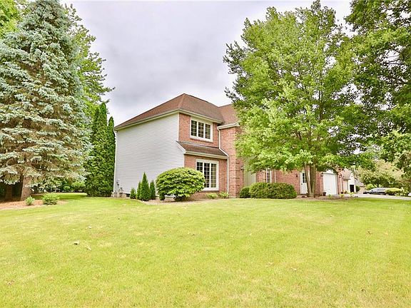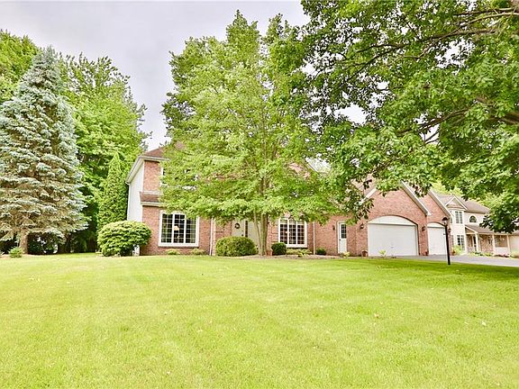 Spectacular 4 bedroom, 2.5 bath contemporary colonial with 3 car garage in Penfield with Webster Schools. An entertainers dream, featuring custom expanded eat-in kitchen with island, updated granite counters and stainless steel appliances. The kitchen flows into the large, updated family room with gleaming new hardwood floor and gas fireplace. On the first floor you will also find a formal dining room, living room, and study/5th bedroom. You will love the master bedroom with vaulted ceilings, walk-in closet and bath w/ jacuzzi tub and shower. The large and private backyard is a great place to relax or entertain your guests on the patio or deck. First floor laundry and partially finished basement with rec room. New siding 2008, tear-off roof 2009, new furnace 2017. Dont wait, call today!