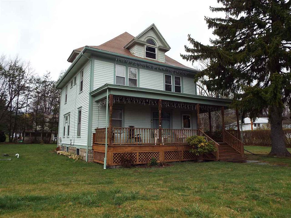 Check out this country retreat set in the Catskills and Woodstock, close to skiing,hiking and plenty of Mt views around you!. Fabulous wrapped porch @ stain glass windows are among the many great features you will find. Open feel as you enter into the living/dining area. Set on a corner lot,you'll also find a sun lit den that opens into the kitchen w/beamed ceiling. Master bedroom on the first floor with own bath @ hardwood floors throughout. This property is com/mixed use as well and has municipal sewer. Great wood molding with built-ins. Additional 660SQ Ft in attice too.. New well pump
