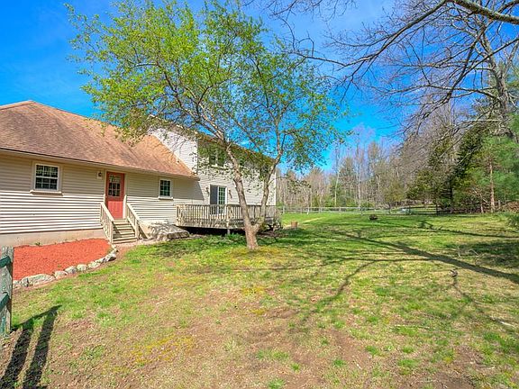 This is country living at it's best! This updated cape home sits on 9 acres surrounded by pristine stone walls and historical barn. You can take it all in while enjoying your morning coffee on the classic, freshly painted farmer's porch. Kitchen is loaded with custom cherry cabinets (2003), wine rack, stainless steel appliances, ceramic tile and eat in area with bay window. Off the kitchen you will find the great room complete with beautiful wide plank pine floors, fireplace, eat in area and sliders to your back deck. First floor also offer's a mudroom with laundry and plenty of storage, along with large first floor bedroom, full bath and enormous linen closet! On the second floor you will find a full bath as well as two additional bedrooms which includes the master. The storage options are endless with a huge walk-in closet which also provides access to over the garage additional storage.