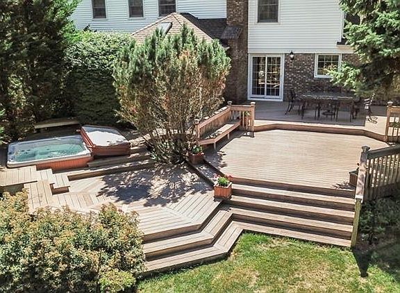A beauty! Not to be missed! Located on a cul-de-sac street and on a wonderful one-acre lot, many quality renovations improvements including a stunning custom kitchen, renovated in 2014 with Quartz countertops and a gorgeous center island. Also: Pella window and door replacements, roof, siding, gutters, driveway, furnace, a c compressor, powder room. (Detailed list available.) There is a 1st floor den office (5th BR. possibility). The large Family Room and front-to-back Living Room both have fireplaces and the Family Room is also open to the Kitchen. The 3-room finished lower level is heated. Enjoy the beautiful backyard from the 1300 sq.ft. (approx.) sq. ft. multi-level TREX deck w built-in seating and hot tub that overlooks a stone firepit large enough for many to gather around.