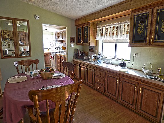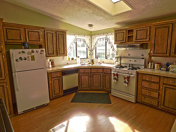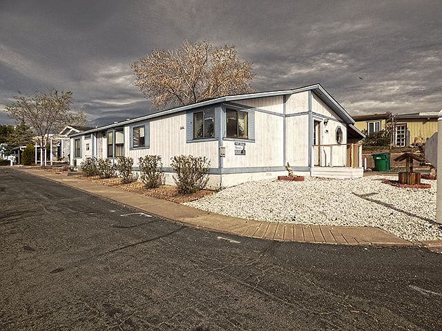 Spacious home on corner lot! Great layout offers a very large living space with bay window and vaulted ceilings. The roomy kitchen has plenty of storage. All major appliances included. Newer wood and tile floors throughout! The master has a large private bath with garden tub, separate shower and double sinks. Walk in closets. Large laundry room with storage. Dining room, large hutch. New plumbing at the kitchen sink and 2nd bathroom. Newer roof is only 5yrs old and has a 35 year warranty. Carport, back yard with pavers, storage shed and more! Lot Rent: 672/mo | Includes: Sewer