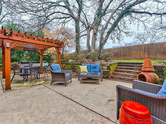 Enjoy your evenings in this stunning landscaped backyard with pergola and extended patio. The first floor living space is truly the heart of this home and beckons to be used for entertaining guests. The family room features a brick fireplace, tiled flooring, and great views of the backyard. The kitchen is nothing short of a chef's dream. A center island, pantry, endless counter space and an attached breakfast area with a window seat. The master suite is the perfect place to retreat & relax with a walk-in shower, jetted tub, double sinks and two closets. Upstairs you'll find three additional secondary bedrooms and bathroom with two sinks. Inground storm shelter in the garage. Bradbury Corner, One of Edmond's Best Neighborhoods. Timeless design for your lifestyle. Welcome Home
