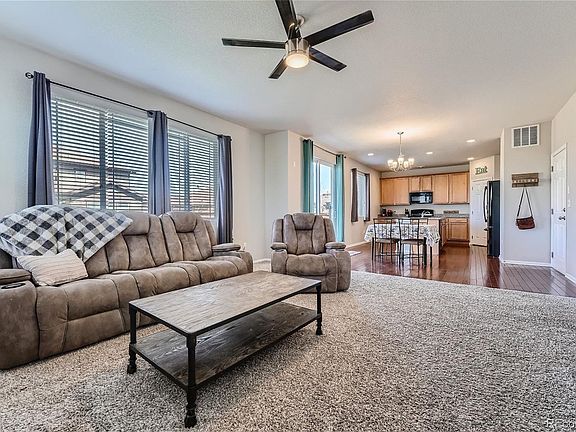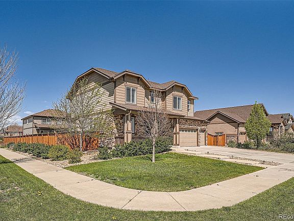 Amazing location in Traditions, corner lot across from park and open space. Beautiful home with so much to offer! Inside you will find a great front office/den, a spacious family room open to the large kitchen (featuring center island, corner pantry, granite and black appliances), upstairs there is large loft, two additional bedrooms, the primary retreat offers plenty of room for your bedroom set and additional sitting area, along with a five piece bath & walk in closet. The large backyard has a great low maintenance stamped concrete deck to relax and enjoy cool evenings or entertain friends. The 3 car garage has space for your vehicles, toys, tools or whatever you want and features a EV port. The unfinished basement has plenty of room for future expansion. Great access to the DIA, I-70 and E-470. This home is move in ready!
