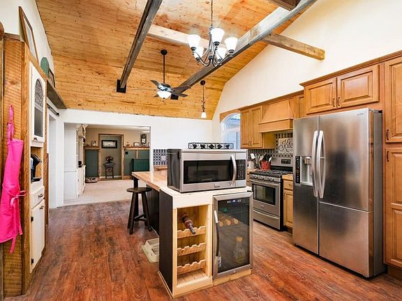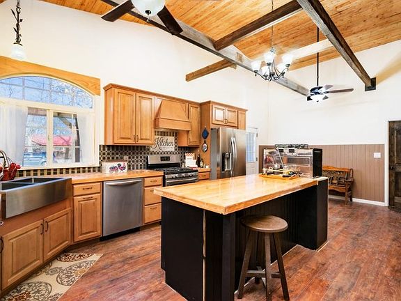 Absolutely beautiful home with character in this remodeled/updated Absarokee home. Ranch style w/open vaulted ceiling in kitchen and loft area. Brand new cherry kitchen cabinets, wood block counters and island w/convection oven, beverage fridge, all new ss appliances, new shingled roof and windows. 10,450 sq ft lot. Master bed w/T&G vaulted ceiling and custom builtins, bath w/tile shower, 2nd bath w/jacuzzi tub. Fenced. Hot tub. Perfect location to walk anywhere in town. So much new!