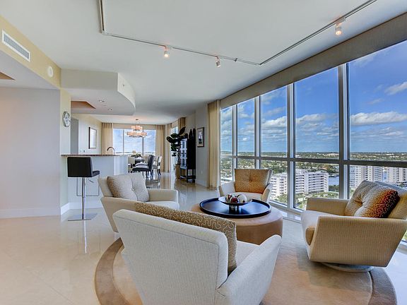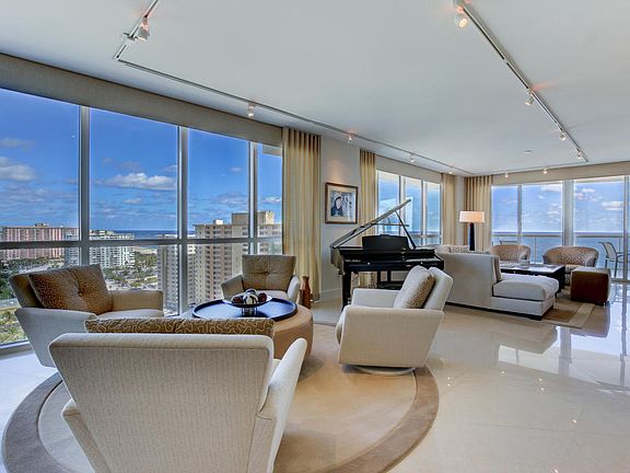 Experience the ultimate in luxury living in this beautifully appointed '' Interiors by Steven G '' sky residence at the extraordinary Plaza at Oceanside.Unit 1607 is a spectacular wraparound residence with two terraces offering both intracoastal and ocean unobstructed panoramic views. This design offers an impressive architectural plan with the foyer leading into the grand salon with living and dining areas overlooked by the island kitchen with dining bar.With over 2,726 of living space, floor to ceiling windows, ocean, intracoastal and unobstructed northern views, you may never want to leave the residence.