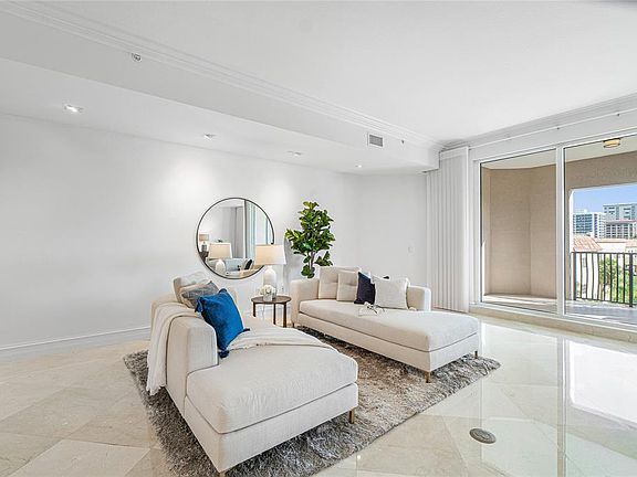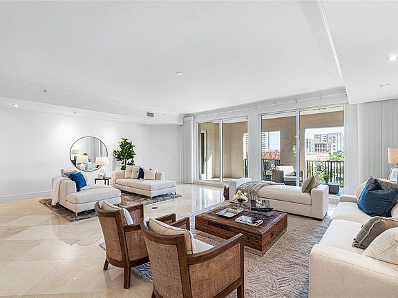 A semi–private elevator opens directly into your private foyer, setting a tone of refined privacy as you enter. The grand salon, dining area, and media room flow seamlessly, all adorned with marble and wood flooring for a timeless feel. Light pours in through impact-resistant windows, accentuating high ceilings and architectural detail throughout.