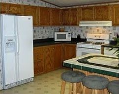 END THE SPACE RACE! Over 1800 sq. ft. of living in this 3 bedroom, 2 bath mobile home located in non-age restricted park. You'll also find a full applianced kitchen with sliders that lead to a 9X5+29X21 deck and a fenced yard. Enjoy your evenings sitting by the fireplace in this 23X13 family room with vaulted ceiling and retire to a huge master bedroom complete with a master bath that features a soaking tub. Other features include a front porch, laminate flooring, laundry room and more. What a terrific place to call home!