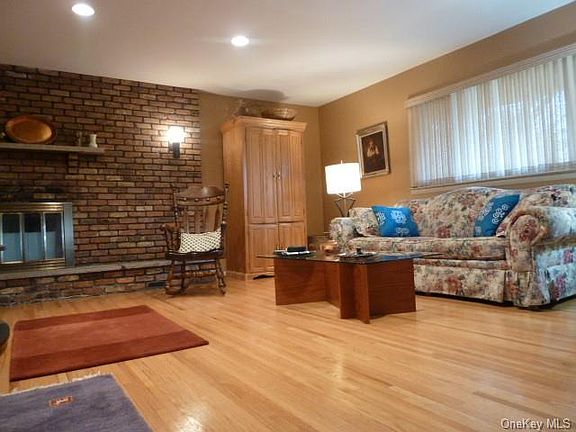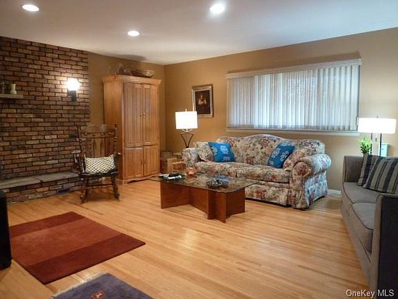 New Hempstead, NY: Fabulous 60 ft Contemporary Builder's Home w/Pagoda roof, open floor plan and nearly 3,000 sq. ft.of living space. Sparkling hardwood floors on upper level, spacious, modern eat in kitchen w/peninsula. Bright Living Room(approx. 20 X 15) adorned w/ brick wall fireplace. Elegant Formal Dining Room adjacent to Seasonal Florida Room with walls of glass. Two entrances to large Custom Rear Deck. Lower Level Family Room (approx. 20' X 16')w/sliders to rear patio. Multiple closets throughout inc. large walk-in cedar closet. Over-sized two car garage w/new insulated door and electronic opener. 3-phase electric. New roof installed 12/2011.