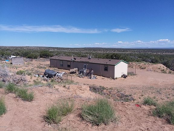 36.4 acre hill top ranch property with incredible views, heavily treed and developed with 2002 Patriot single wide MF home with a covered front porch which is fenced in. A metal storage shed and a quonset hut metal workshop set on cement pad and wired for elec power. Home is solar powered. Septic is in with RV hook up too. 3000 gallon water holding tank with pressured water system to the house. Off grid living set up. Property borders State Trust Lands on the north and west assuring additional privacy (no one can build there). The approximate elevation of the residence is 6200 ft which gives million $$ views of the land below and the mountains beyond. Property being sold ''as is.''