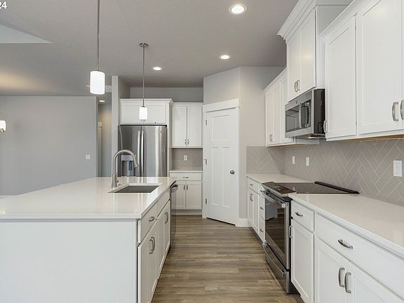 The Latourell plan, located on Lot 76, is a stunning one-level home designed for exceptional living. Featuring 4 spacious bedrooms and 2 1/2 baths, this floorplan boasts a vaulted great room with a cozy fireplace, creating a welcoming atmosphere. The kitchen is a highlight with its large island, pantry, stainless steel appliances, and more! Laminate flooring flows throughout the main living areas, adding to the home's appeal. The vaulted 4th bedroom includes a walk-in closet, providing ample storage space. Enjoy outdoor living with a huge covered patio and a fenced backyard. The primary suite offers a luxurious soaking tub, separate shower, double vanity, and a large walk-in closet. Visit Dugan Estates homes on Saturdays and Sundays from 1 to 4. Please note, attached photos are for example purposes only.