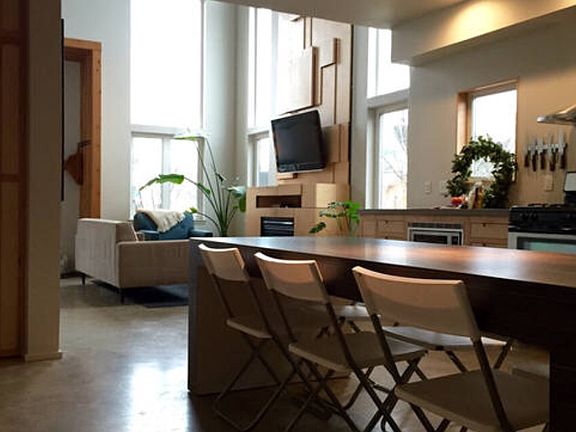 Gorgeous modern loft,18-ft ceiling, huge windows, custom features. In hip and vibrant N. Williams corridor. Walk to terrific restaurants, coffee, bars, parks. Highly desired location close to city center, transit, I-5. Open floor plan with tons of light. Concrete and bamboo. Custom staircase, cabinets, mantle. Spacious loft bedroom w/ walk in closet and laundry. 2nd bedroom/office on main level.