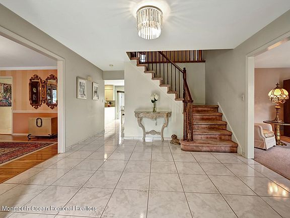 Desirable brick front ''Buckingham'' colonial in the heart of Marlboro features 5 spacious bedrooms & 4 full baths. Formal D/R & L/R. Kitchen includes S/S appliances, double oven, granite counter tops & 4' bumped out eat in area. Slider leading to large deck & backyard with plenty of room to play. Adjacent sun filled F/R with hardwood floors & recessed lighting. 5th bedroom with redone full bath on the 1st floor. Incredible finished basement has a full bath, new laminate tile, wet bar, playroom and lots of storage. Hardwood floors under all w/w carpet. Central Vacuum. Extended Driveway and Over sized garage. Underground sprinklers. Professional landscaped. Great curb appeal!