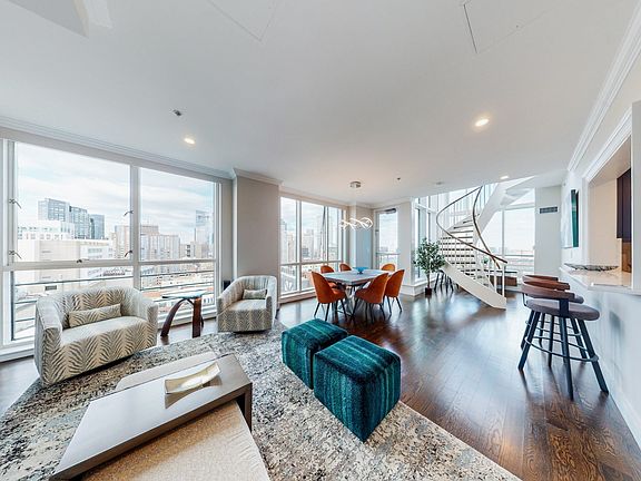 SELLER TO PAY UP TO ONE(1) YEAR OF HOA FEES!! Newly remodeled Penthouse ideally situated between Midtown, Chinatown, and the South End, within a short distance from the Orange line. Two-story corner unit with dramatic, panoramic views of Boston, Back Bay, South End and Boston Harbor. Upgrades include designer chef's kitchen with custom Cadet Blue cabinetry, Carrara marble countertops, high end appliances and wine fridge; oak hardwood flooring, crown molding, baseboards and recessed lighting throughout. The living space is open to the dining and private outdoor deck which is perfect for entertaining. The primary bedroom includes a large sitting area and dual closets. Large second bedroom includes built-in queen-sized murphy bed and ample closets. Quick access to Wholefoods at Ink Block, Roche Brothers Midtown and the city's best restaurants, shopping, fitness and more. Deeded storage and one valet parking space is included. Full featured sheet attached.