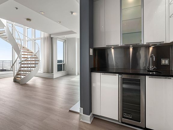 Perfectly situated in a prime locale, this opulent penthouse boasts secure access and a sun-drenched southern exposure. With an expansive entertainment patio, valet parking, storage amenities, and 24/7 concierge service, it epitomizes luxury living. Floor-to-ceiling windows showcase breathtaking vistas of the Blue Hill Mountains and Boston Harbor Islands, instilling a sense of serenity. A grand staircase adds sophistication, while the lower level is designed for entertainment with a fireplace, custom wet bar, and half bath. The kitchen blends style with functionality. Three seamlessly connected rooms create a lavish primary suite for ultimate comfort. Completing this lavish retreat is a private rooftop terrace offering unobstructed southern views, perfect for outdoor dining and relaxation.