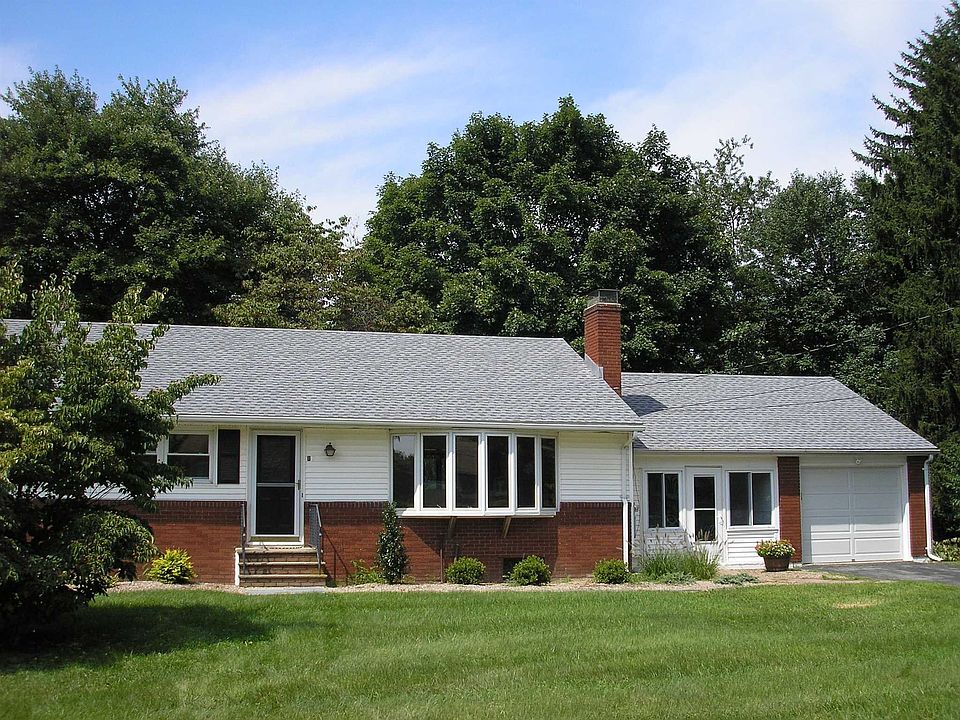 A country 3 bdrm ranch sets on a corner lot with open fields across the road. One level living with just 3 stairs to breezeway/garage. Has a mstrbath plus hallway bath. Breezeway large enough to use as an enclosed porch or sun room,etc. Very clean. Level driveway & lawn. Owner will handle mowing. Newer boiler and roof. Washer/dryer in full usable basement(access thru breezeway). Available 9/15. Fireplace not to be used. No pets. No smoking inside. Credit report,pay stubs and references required.