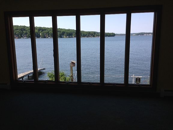 Incredible down the lake views, deep swim water location. Level lake front offers tremendous opportunity in a prime location! Sunset views from the paver patio. 1700 sqft ranch includes lower level. Updated kitchen, white cabinetry, corian counter, open to dining area overlooking the lake. Large living rm w/hardwood floors under carpet and tremendous lake front views! Spacious master bedroom on 1st floor (converted 2nd bedrm) Custom size full bath. Finished lower level walk-out offers brick w...