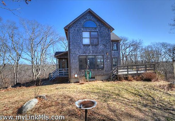 Aquinnah Moshup trail hilltop. Lovingly sited on a south facing hill and ready for solar, this custom home with a contemporary farmhouse feel was custom designed as a remote work and living space by a telecommuting lawyer/photographer. The house maximizes morning light by facing 15 degrees east of south. Light enters through 36" wide, oversize windows , and there are views of nature in all directions, including woods, gardens and lawns on the first floor, and on the second, views of the Atlantic Ocean, Squibnocket Pond and Noman's Land. This home has a strong and intimate relationship with the nature around it. An open floor plan on the main floor is both roomy and intimate with lots of large windows making it a very bright and warm home. There are 5 different areas that can be converted to workspaces and the home has good WIFI, lightening rods and you hear the waves crashing whenever there is surf. The 2 upstairs bedrooms have lots of light and distant views over the dunes of Squibnocket pond. There are gardens, abundant bird life and a great feel in a cozy house. What cannot be overstated is the amazing beach accesses Aquinnah offers. There are 2 places on Menemsha Pond for kayak and sunfish storage, the ability to have a mooring with relative ease, and 5 beach accesses that offer an adventure at any time. Philbin beach is one of the best spots on the Vineyard and the sunsets are world class as seen by this writer!