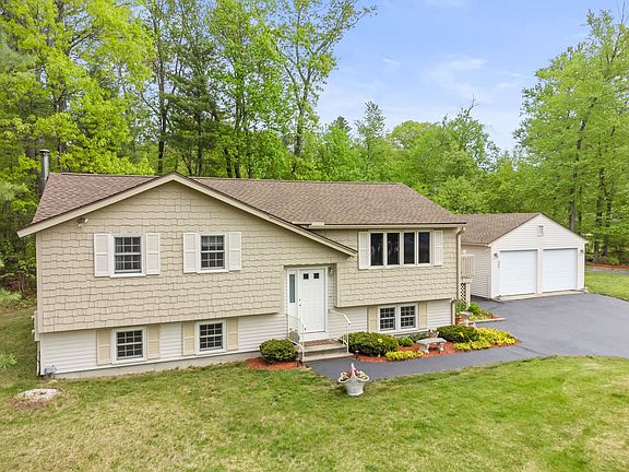 Meticulously kept split level with 2 car garage and shed. Located in desirable Merrimack neighborhood, close by to amenities, yet just far enough away. Nicely landscaped .46 acre corner lot with plenty of parking with the second driveway, (Primary driveway just sealed)\. Garage and shed for additional storage. Enjoy listening to the birds while sitting out on the porch or patio with your favorite beverage. Inside you have an open kitchen, dining room area with plenty of natural light. Living room 4 beds (tax card shows 3), 1 bath. Family room on the lower level offers a great place to cuddle up to the wood stove in the cold months. There is also a forth bedroom or office space. Roof, water tank, expansion tank and carpet are all within 5 years old. This home needs nothing but new owners! Showings are during the hours of the open houses only. No appointment needed for open houses, Thursday 5/18 from 4-6 and Saturday 5/20 from 12-2.