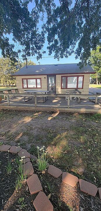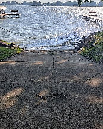 Small, quaint lakeside property with detached, oversized garage. Great location! Large lot and extra long water front access. It features an aluminum dock with a bench to enjoy the beatiful sunrises and sunsets and also includes your very own, private boat ramp and lakeside concrete pad if you have friends with campers. This lot has plenty of room for future expansions. Come enjoy the lake and call this beautiful property your own.