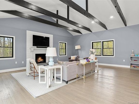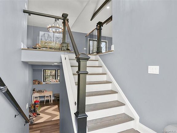 STUNNING, COMPLETELY RENOVATED 5 bedroom, 4.5 bath home that was brought down to the studs & rebuilt in 2021! Desirable open layout with hardwood floors, cathedral ceiling, beams & gas fireplace! Amazing eat-in-kitchen with quartz counters, stainless steel appliances, center island & state of the art lighting! Delightful primary bedroom with cathedral ceiling, ceiling fan, balcony, walk in closet w/closet organizer & full bath with walk in shower & double sinks. 2 additional bedrooms on main floor. The lower level features a large family room, 2 additional bedrooms (1 an en-suite; perfect for au pair/nanny/guest suite) and another full bath. An terrific layout for an in-law/au pair/guest situation! Mudroom with built in cubbies. C/A. 2 car attached garage. Large, level front yard perfect for a play set! Paved driveway. Conveniently located close to all schools. Sought after cul-de-sac with lovely homes. Must see!