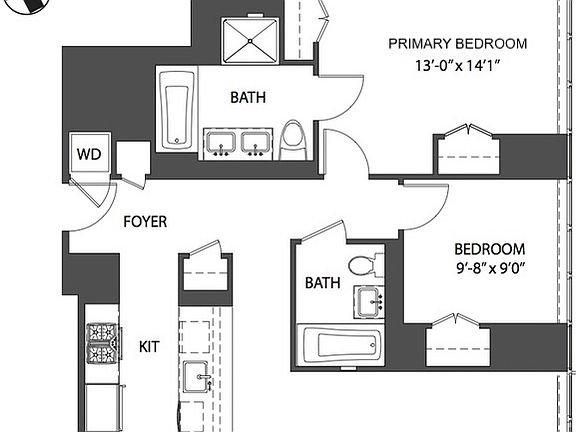 City and river views from this sunbathed condo at 1 Northside Piers! Residence 12E is a southeast corner two bedroom, two bathroom rental. It is the largest 2 bedroom line (1,152 Square Feet) at Northside Piers and is flooded with light and panoramic views from every room.