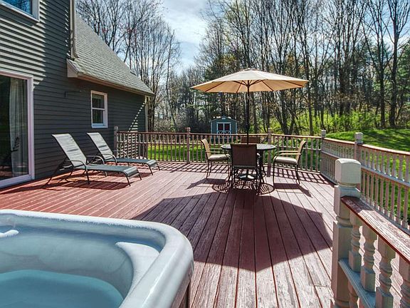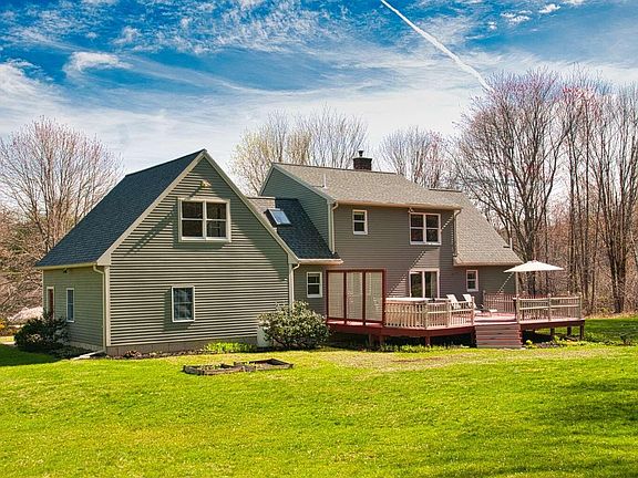 Meticulously maintained Cape in a friendly neighborhood. Kitchen w/cherry wood cabinets and granite counter tops, perfect for entertaining. This house features an open concept floor plan with a wood stove and hardwood floors. The first-floor high ceiling master suite is currently used as a den (laundry and half bath on first floor). The second floor has 3 bedrooms, with the largest now used as a master. A finished basement office room doubles as a guest room. Large deck with hot tub overlooks private yard on a 2.77 acre lot with mature gardens. This property is well located with easy access to ocean and walking trails, both Freeport and Yarmouth, and only 15 minutes to Portland.