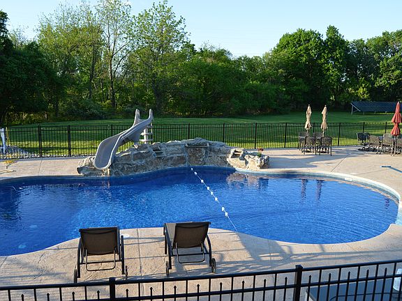 4 bedroom center hall colonial on over 5 acre lot. 3 year old in-ground heated pool with large, stunning stamped concrete patio. Spacious kitchen open to vaulted ceiling family room. Sliders off
