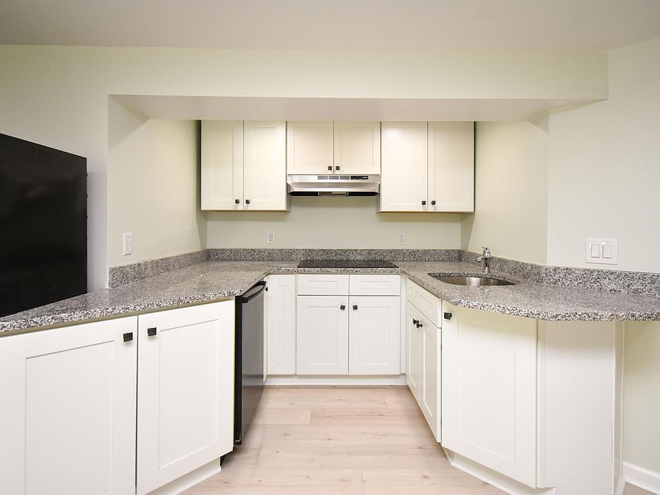 Newly remodeled, open concept layout, one bedroom apartment with separate office. Bright and spacious, this unit boasts new lighting, new flooring and new built-ins. Kitchen with granite countertops and dishwasher. Washer and dryer in unit! Driveway parking with the possibility of garage parking. Super convenient location, walk to train & Main Street, minutes to I-84. All utilities are included! Lease terms flexible for qualified applicants. Minimum credit score of 700 required. All utilities included. One month security, first month's rent, 1/2 month broker fee upon lease signing. Completed application must include credit report and proof of employment/income. No pets, no smoking inside.