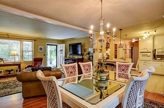 Well maintained home with a full unfinished walk out basement with lots of trees. Step upon the rocking chair, covered front porch. Step inside onto gleaming hardwood floors, into a spacious den that is also open into the dinning room and the all white kitchen with lots of cabinets. Down the hall you will find three bedrooms and one and a half baths. Out back you will find a large deck for grilling or just relaxing. You have a carport on the main level or you can go downstairs to a full unfinished, walkout basement. You could have a 'man cave' or you could park several cars. Nice corner lot, near shopping, close to I-85 and Highway 25.