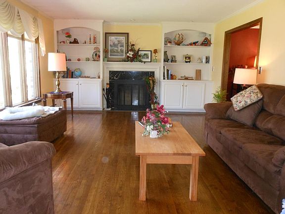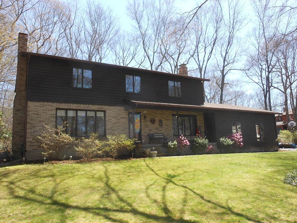 Spacious 4 BR, 2.5 bath Colonial set on a corner of cul-de-sac in Sherwood Forest subdivision offers eat-in kitchen with slider to deck, formal living room with fireplace and built-ins, family room with fireplace, hardwood floors throughout, master suite with full bath & walk-in closet, spacious bedrooms, partially finished basement, central air (2nd story only), 2 car attached garage and nice wooded setting.