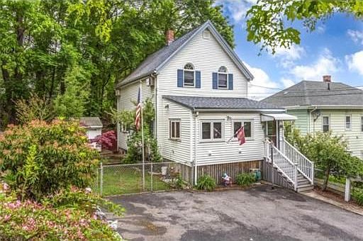 Pretty Colonial style home that has been renovated and updated through the years and is in move-in condition. Steps from Oak Grove Station, this cozy home offers an updated eat-in kitchen with bleached oak cabinets and ceramic tile floor. The bay window in the living room lets in lots of natural light and the den is also a sunny spot to relax with a good book. The second floor bedrooms offer ample closet space. Recent updates include a new roof with lifetime guarantee, shed and retractable awning for those warm summer days. This home is so handy to the T but it is nicely set back on a private way.