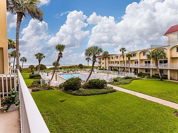 WONDERFUL, 2 BR, 2 BA Condo with an Ocean View in one of St. Augustine's favorite gated Ocean Front Condo properties! Fully Furnished, 2 story unit with elevator access. Kitchen has been upgraded with cabinets and silestone counter tops. Hurricane rated sliding door off the living room to balcony overlooking the pool and the ocean! Unit is furnished and ready to be your home, a second home, or may be used as a Vacation rental with a 7 day minimum rental period. Both bedrooms on 2nd Floor. Master offers the same ocean view, and 2nd bedroom has private entrance on 3rd level of building. Spanish Trace is at the end of Ocean Trace Rd, right at the Beach entrance and offers great views. Tennis Courts, clubhouse, rental office, pool and laundry facilities all on site. Close to shopping, dining, and attractions and all that St. Augustine has to offer!